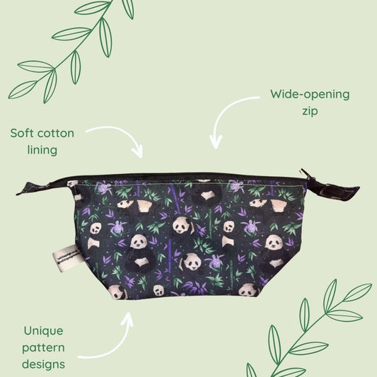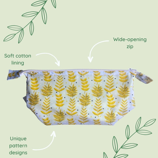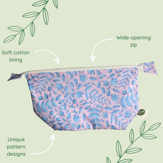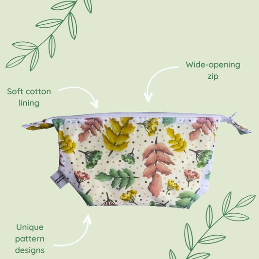 Our gorgeous patterned makeup bags come in a range of prints, and are big enough to carry all those makeup essentials. With a wide opening, they can fit a good amount inside, making your travel or storage an easy task. Available in all the usual patterns, plus a few special ones, check our the store for matching items and gift sets.